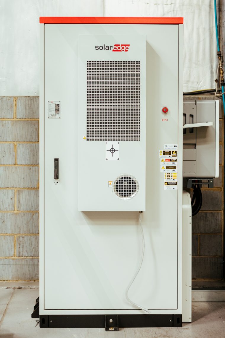 • SolarEdge 102.4kWh SolarEdge CSS-OD commercial battery. Image credit: Farlie Photography.