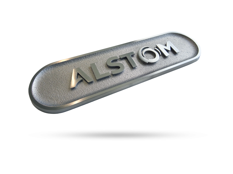 • Targhetta con logo per i treni Alstom prodotti in serie.