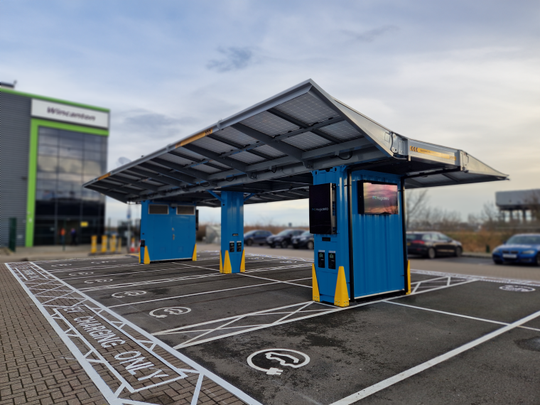 • With 12 fast-charging 22 kW AC points, it is designed for vehicle fleets, workplaces and destination charging sites